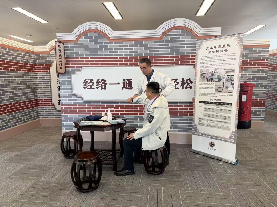 作为展示中医药文化的重要窗口,服务站墙面上图文展板详细介绍中医养生知识及中医适宜技术资料。不少保障人员休息时会驻足观看,亲身实践中感受中医药的独特魅力,有效传播中医药文化。截至11月2日,服务站已组织6场中医特色义诊活动,从体重管理、调代谢第一资本,到护筋骨、稳尿酸、助消化、控血压。累计服务超500人次,其中,中医适宜技术服务244人次,推拿服务122人次,得到了驻点保障工作人员的广泛好评。